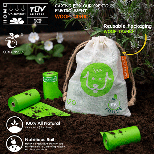 Typical polyethylene plastic waste bags take hundreds of years to break down. In a properly managed compost, our home compostable pet waste bags will break down completely in about 6-12 months with NO microplastics.